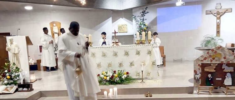 Deux photos de la messe de la veillée de Noël de 18 h 30 à l’église Saint-François-de-Sales ce 24 décembre 2025.